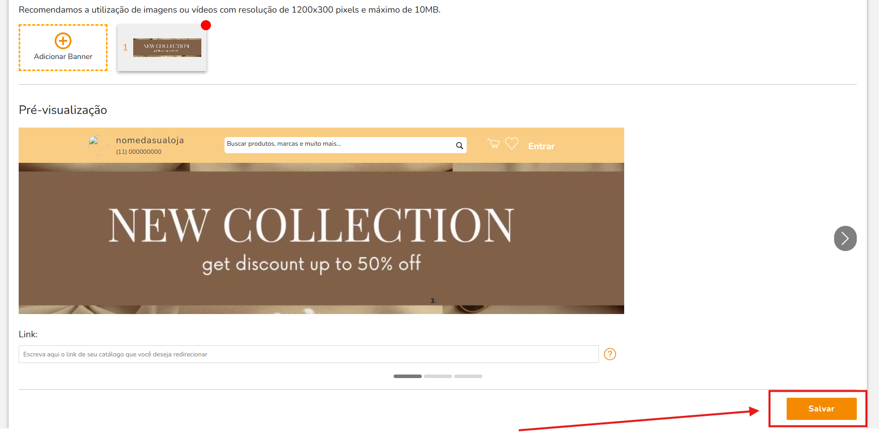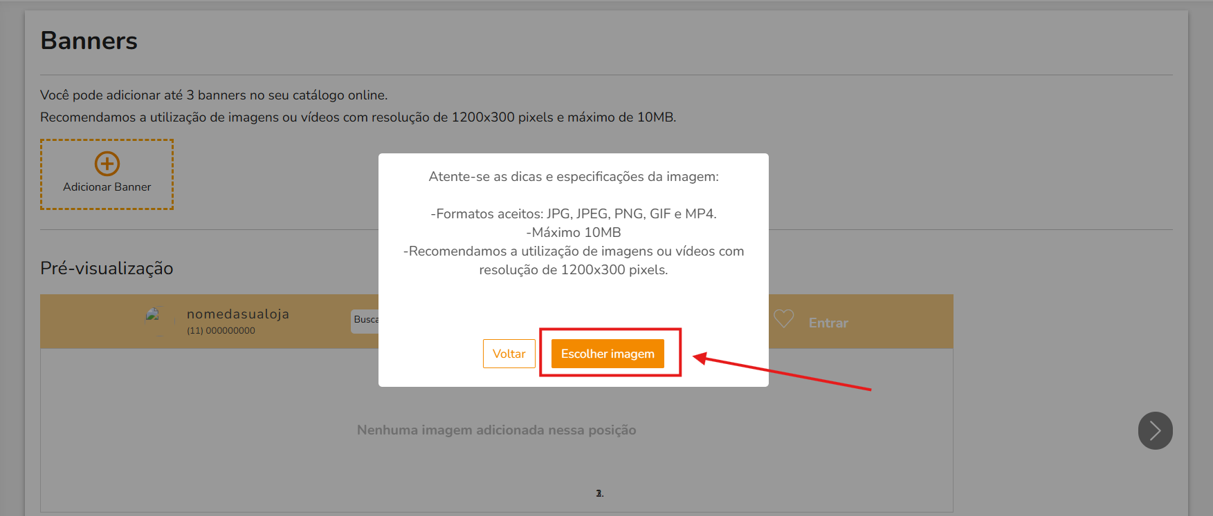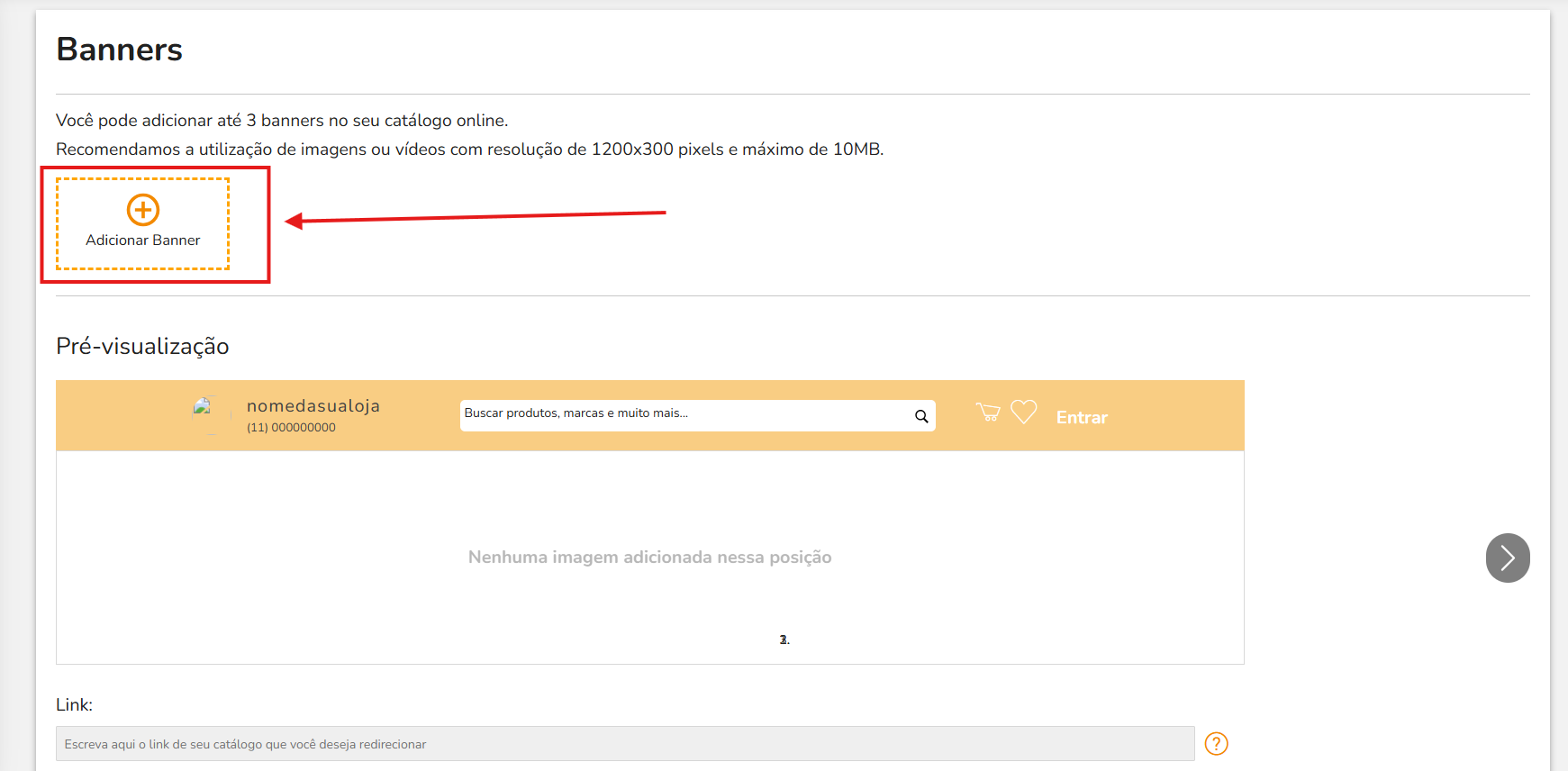importante: Você pode adicionar até 3 banners no seu catálogo online.