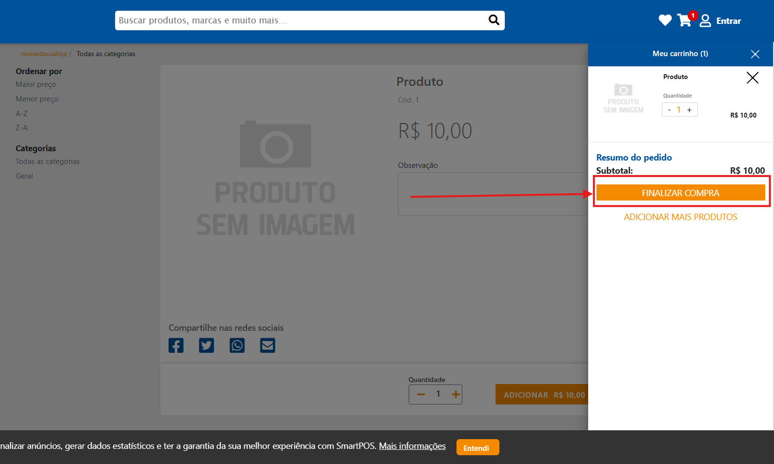 - Verifique o item no seu carrinho ou continue adicionando mais produtos