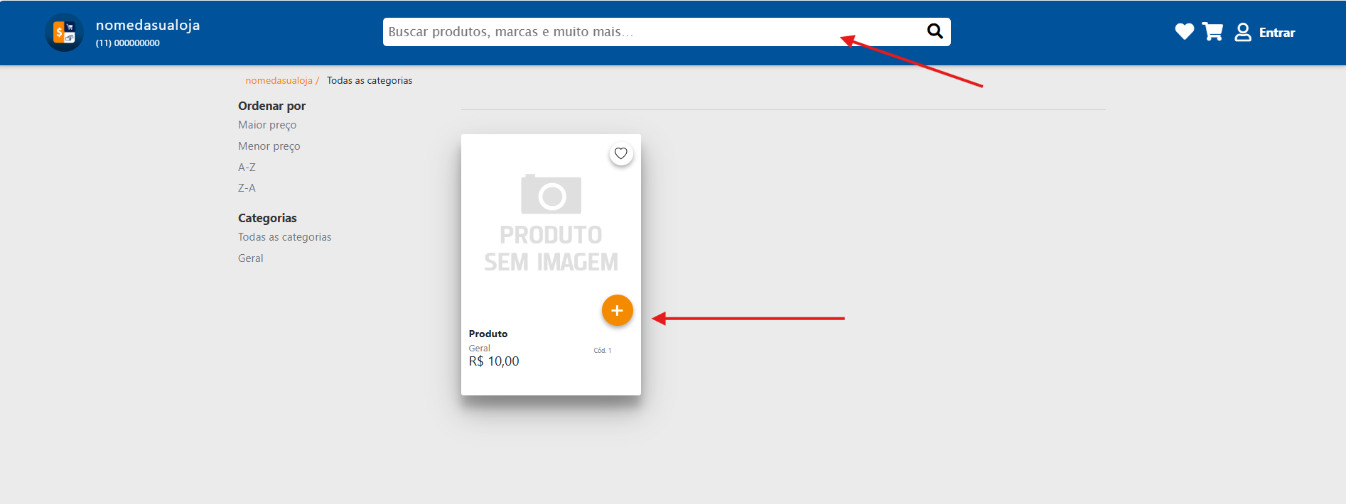 - Na página inicial, você pode pesquisar, navegar pelas categorias ou selecionar o produto diretamente