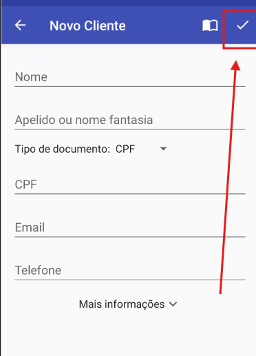 Preencha as informações do cliente e clique em ✅ para Concluir