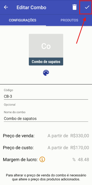 Editar combo de produtos [Android]