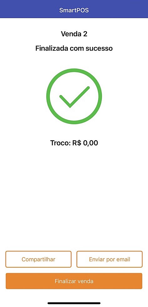 > Ao finalizar, será exibida a mensagem Venda finalizada com sucesso. Você pode compartilhar, enviar por e-mail ou apenas concluir..jpg)